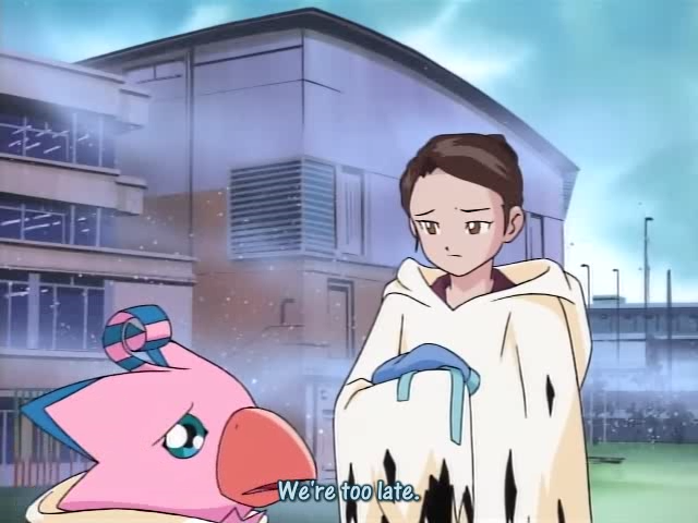 16. La mamá de Sora está en shock por Piyomon o.o Pero reacciona cuando le dice que Sora está en peligro o.o