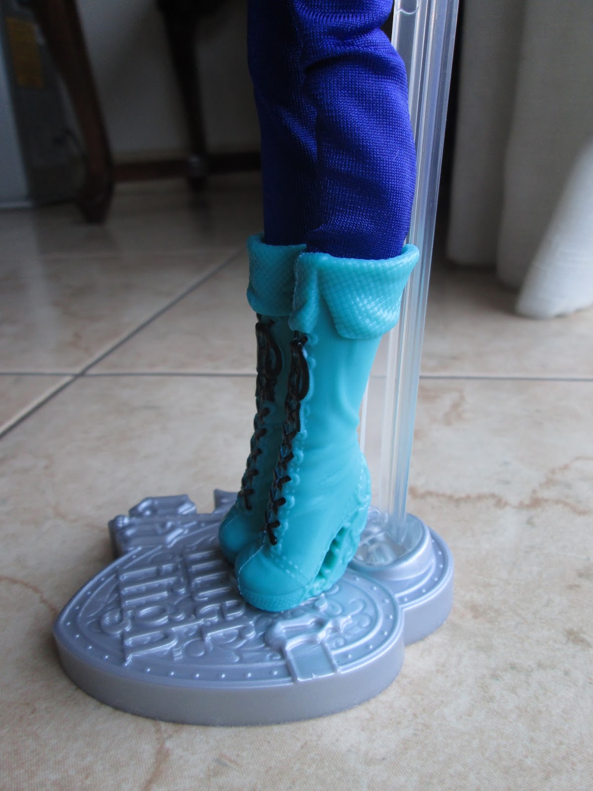 Detallitos de Fay ahora :) Esta vez son más XD Primero, vemos de cerca su corona, que parece tener una... manzana? o algo así de color menta oscuro, más unas cornamentas/cuernos *u* Después, su cartera muy de cheerleader, que parece un pompón XD Luego tenemos su manito, con su bello anillo, y la parte de atrás, con sus hermosas alas de hada. Ahora siempre que las veo pienso en "wings so pretty!" y una mano sacándoselas XD Después tenemos el mechón de pelo de Fay, que me encanta porque es menta oscuro *o* Y por el otro lado tenemos el tatuaje de su ojo y su aro, que parece una... estada? Varita? XD Finalmente, tenemos sus hermosas y simples botas menta *o*